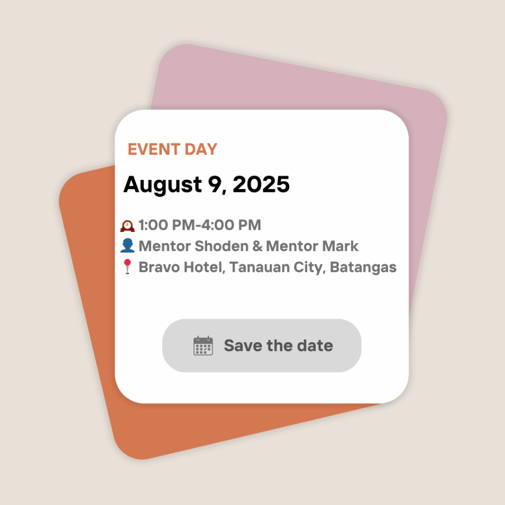 This workshop is an in-person event but will also be livestreamed and recorded. You can get tickets for the live in-person workshop at Bravo Hotel in Tanauan City, Batangas, or join the online livestream.